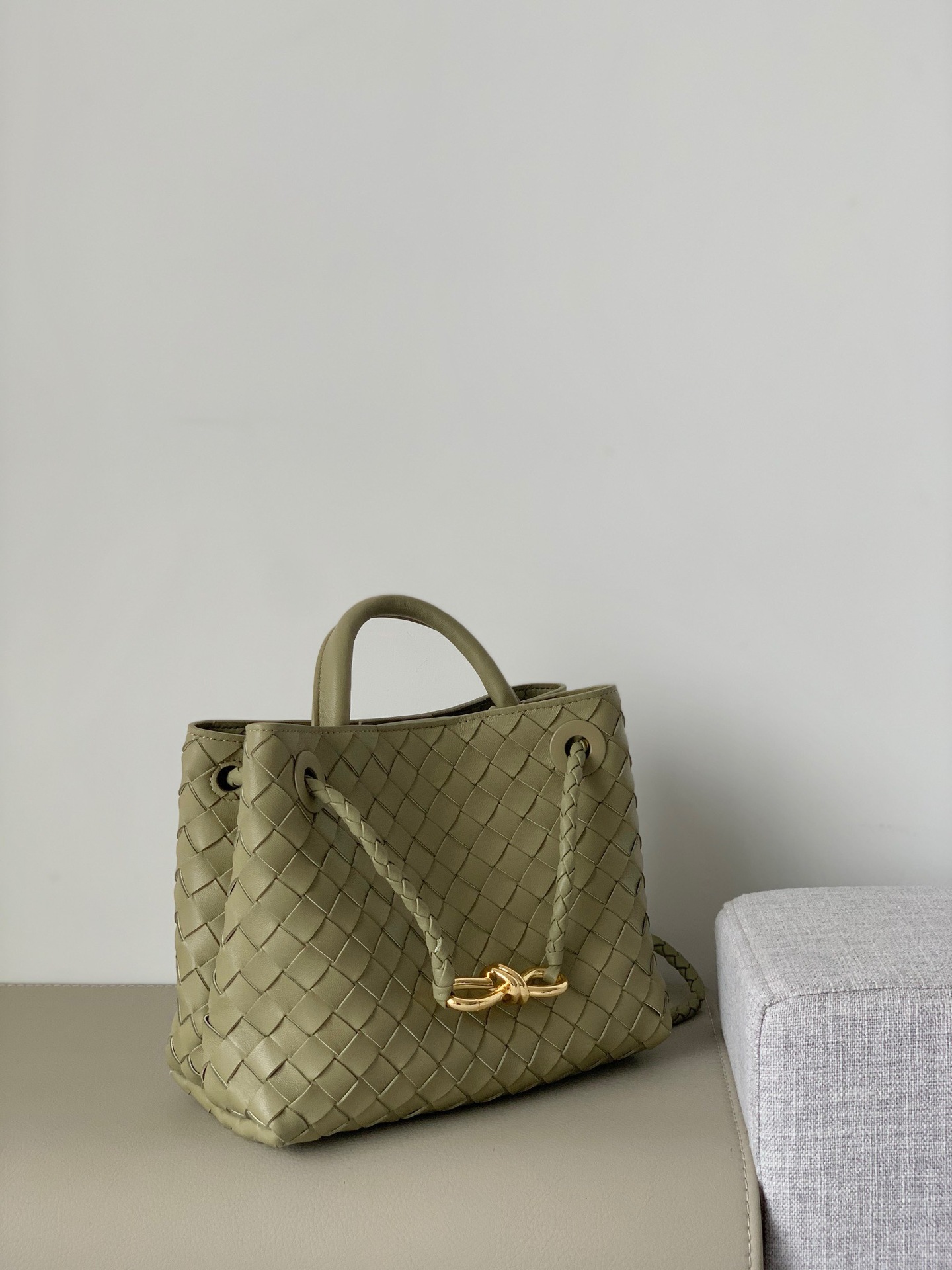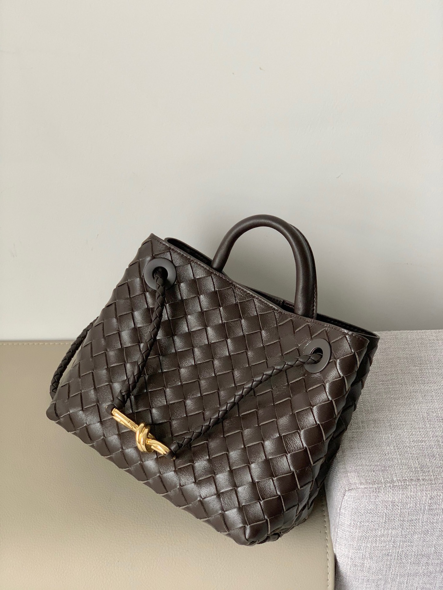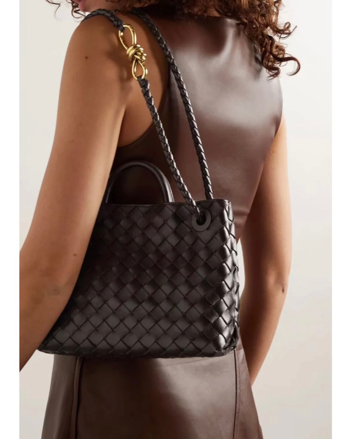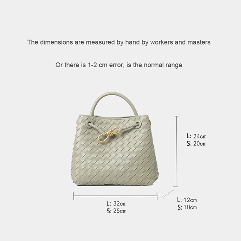 Leather bag metal rope buckle hand woven shoulder handbag crossbody bag woman