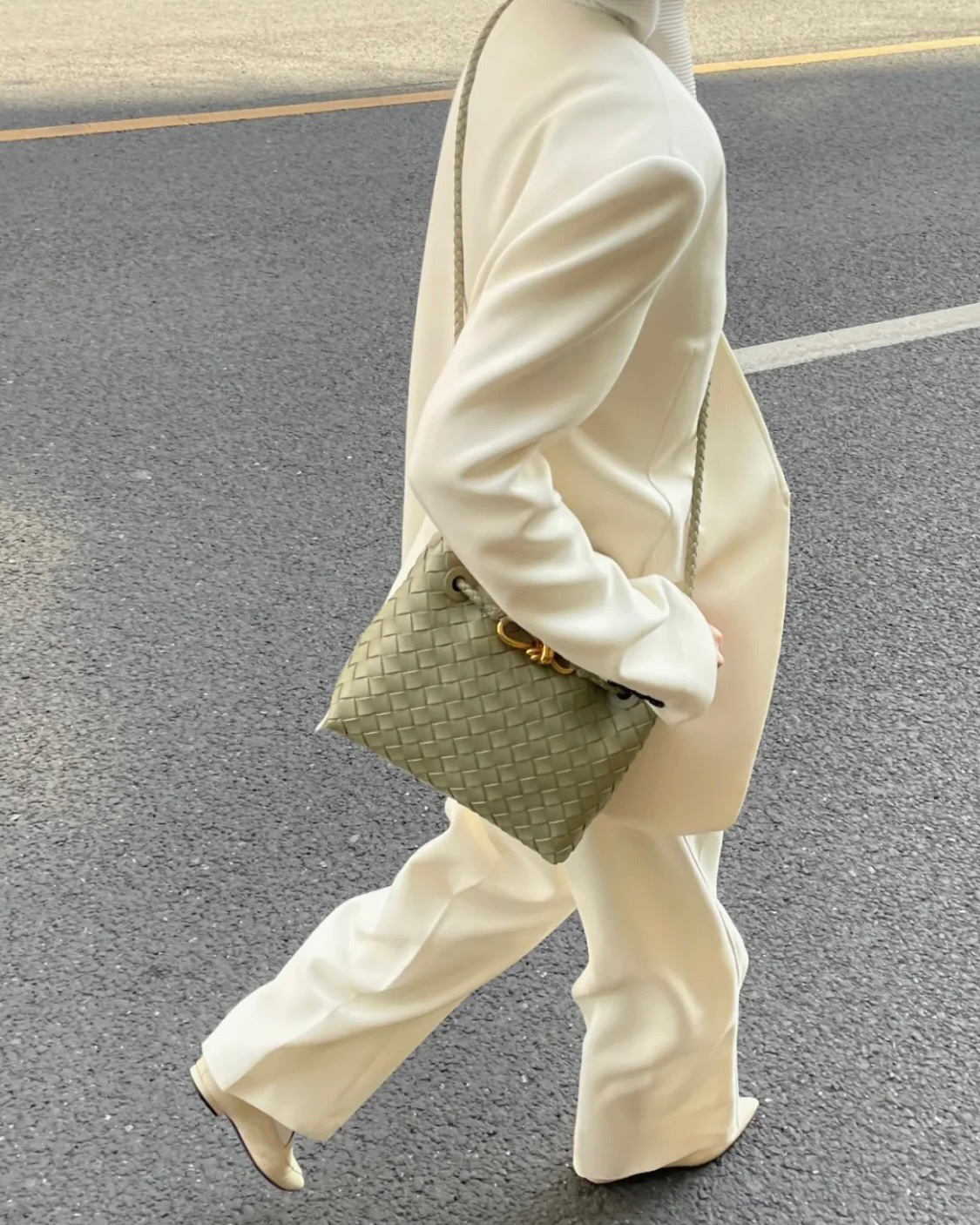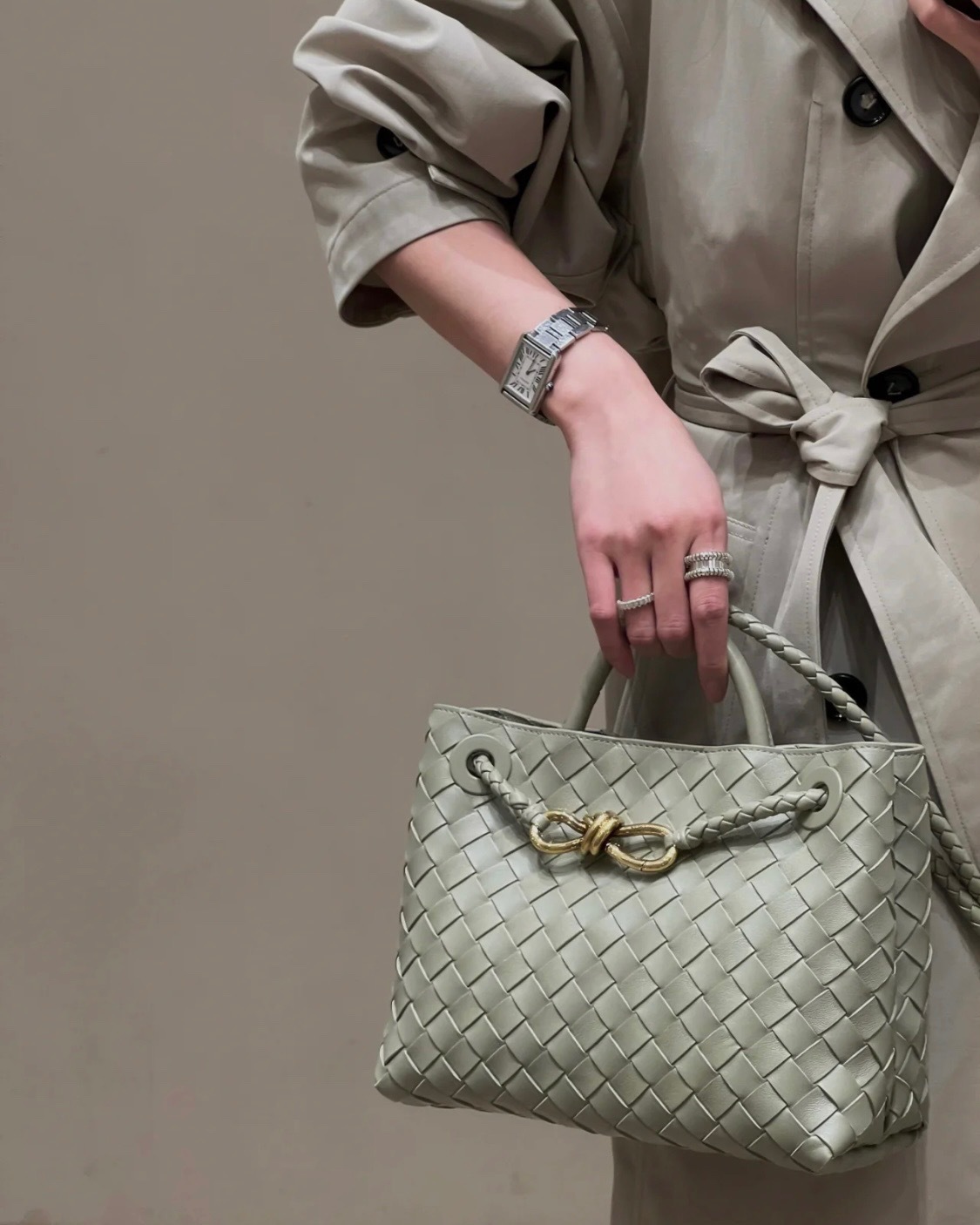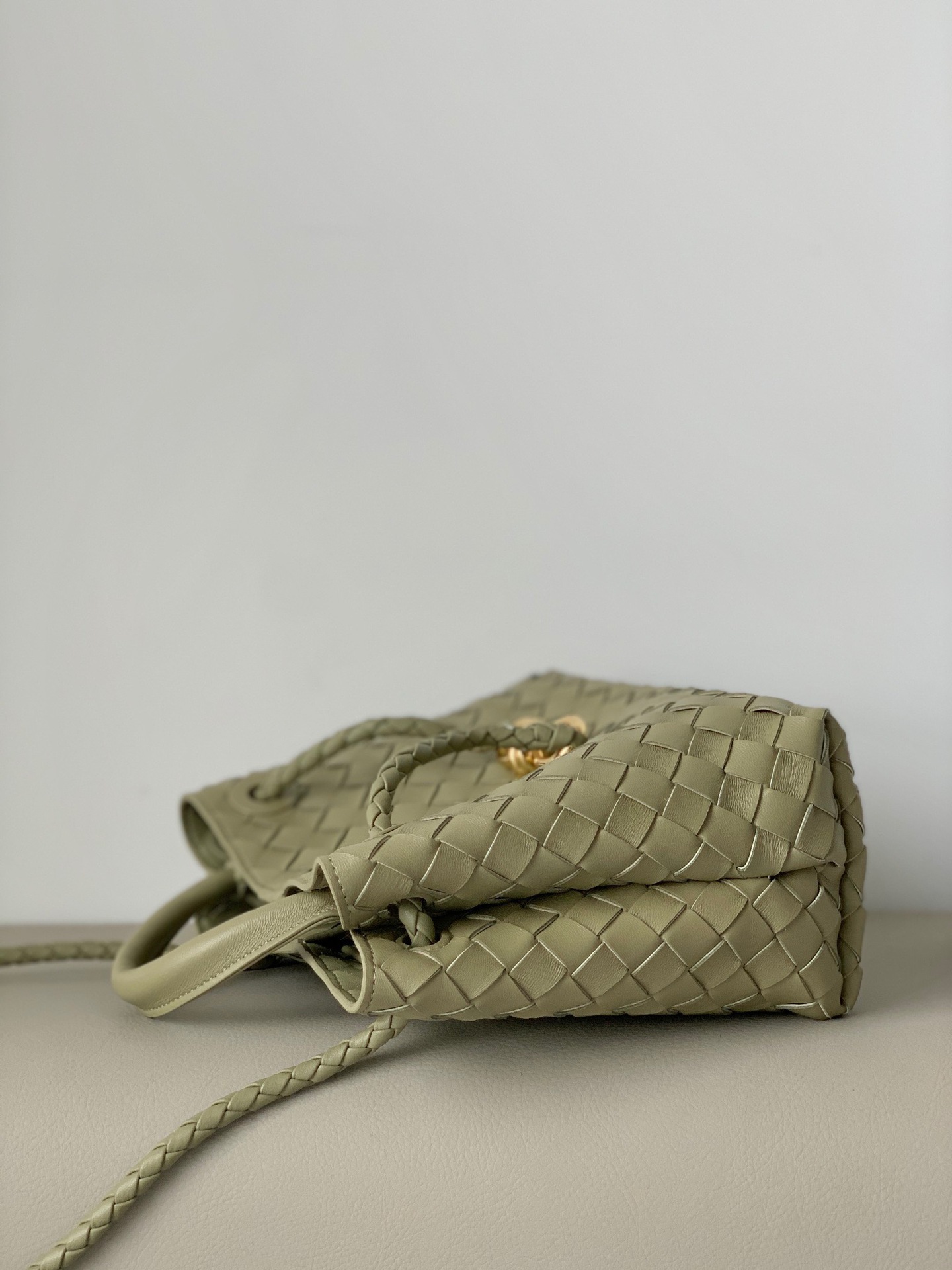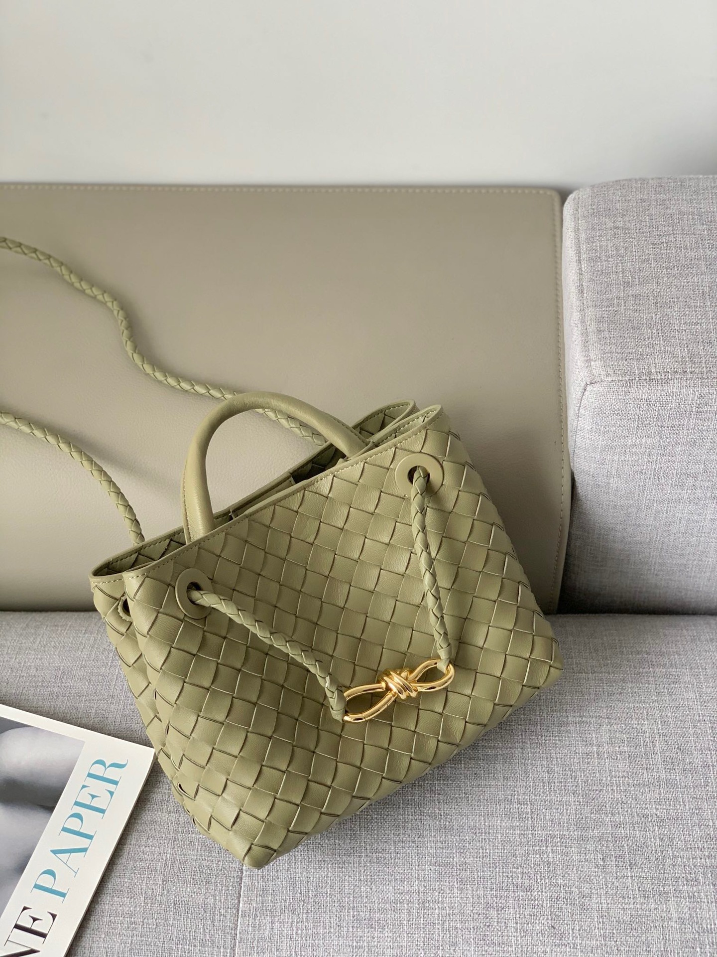 Leather bag metal rope buckle hand woven shoulder handbag crossbody bag woman