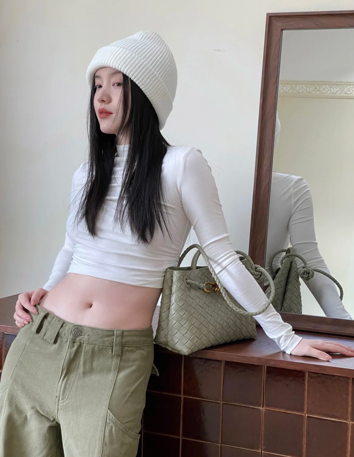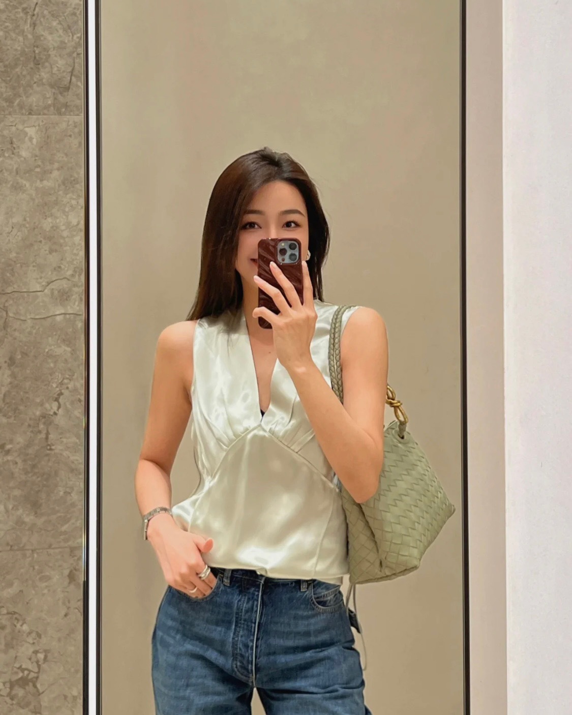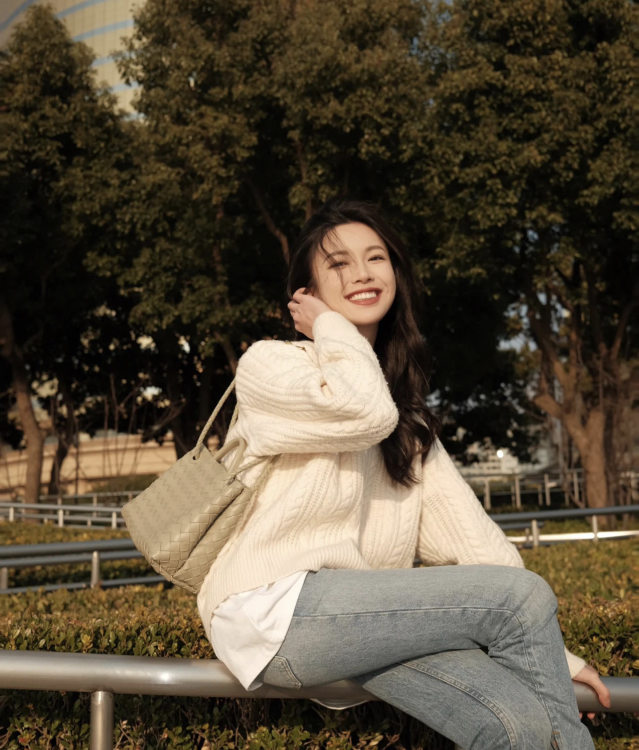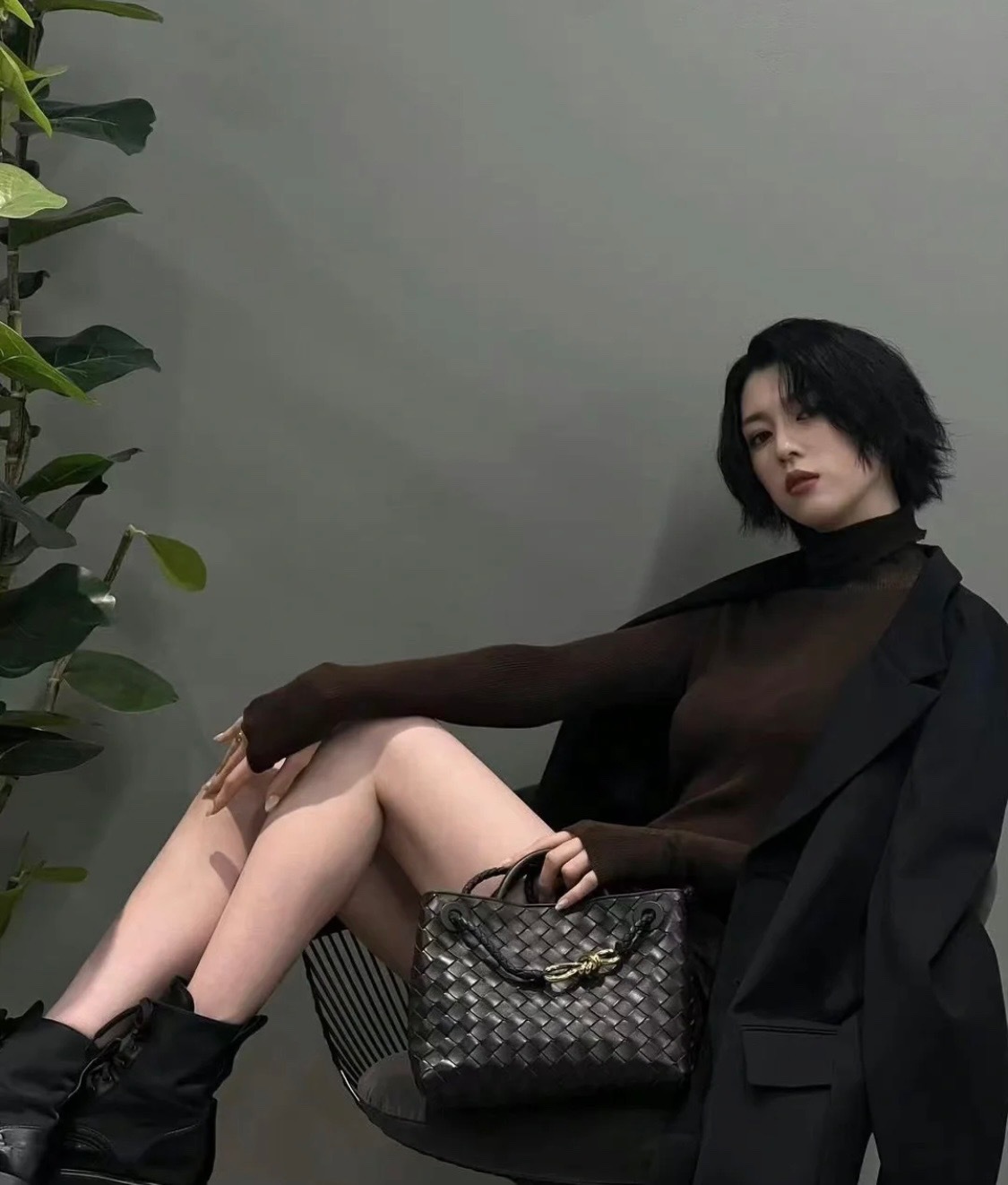 Leather bag metal rope buckle hand woven shoulder handbag crossbody bag woman